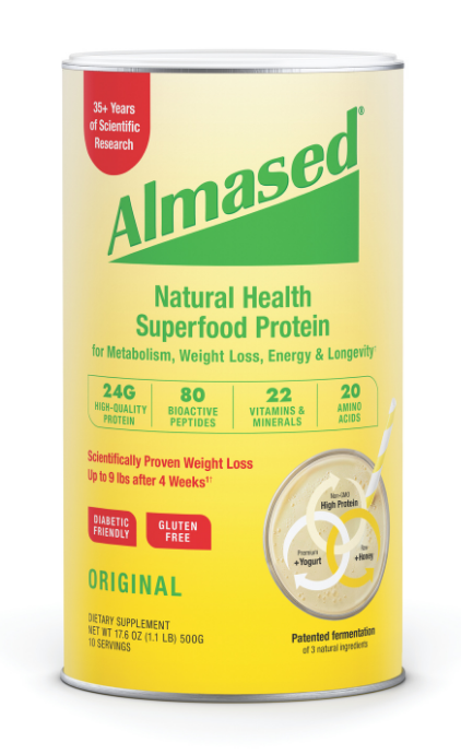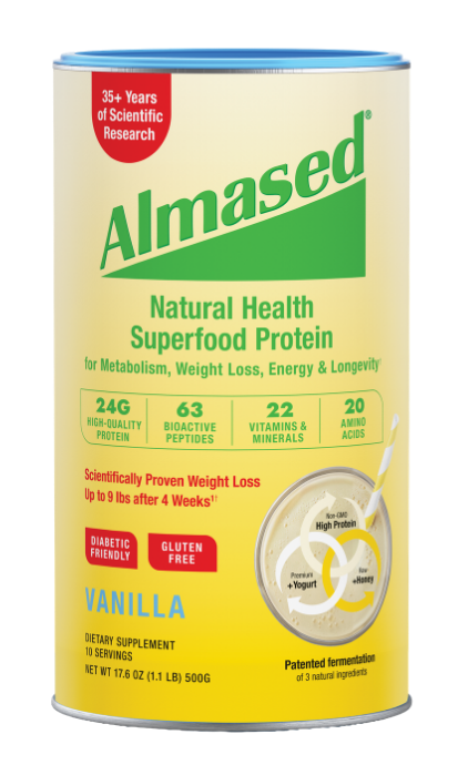 Almased is the only all-natural superfood protein shake that has 32 peer-reviewed scientific studies to support its many health benefits. With 22 vitamins & minerals, 80 bioactive peptides, 24 grams of high-quality protein and amino acids in all the right ratios, Almased improves your metabolic health. By retaining muscle, Almased helps stop the slowing of metabolism that happens after dieting. And, it’s Diabetic-Friendly too.